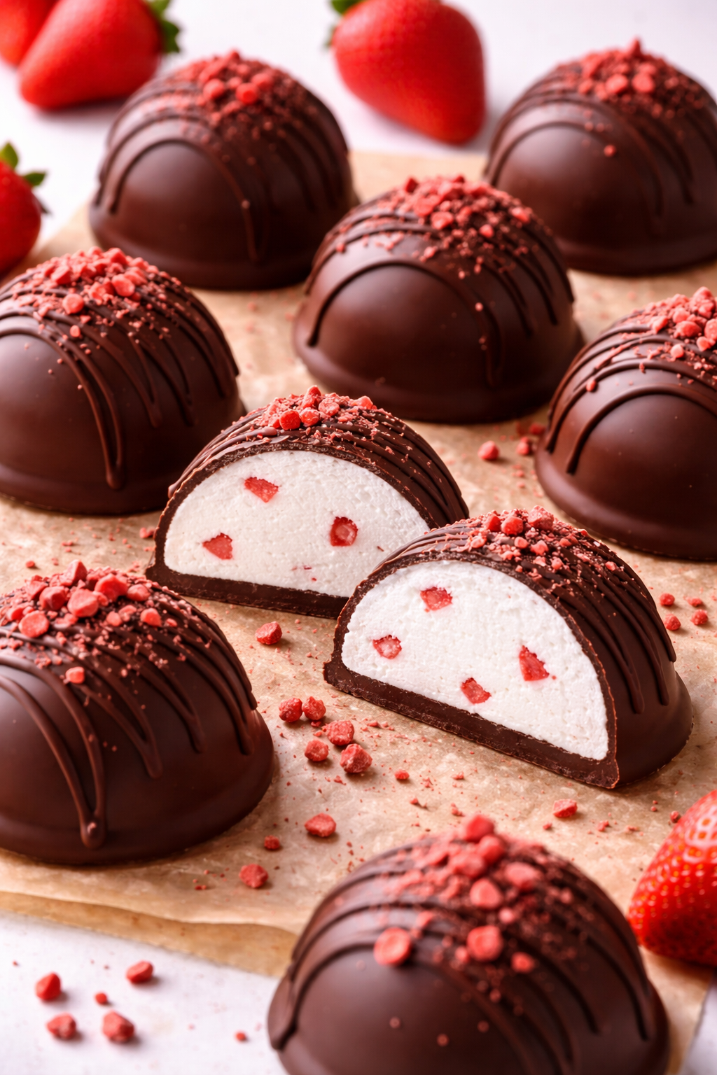 They’ll learn how to mold glossy chocolate shells, fill them, and seal their own bakery-style treats—then finish with a sprinkle of strawberry crunch on top.